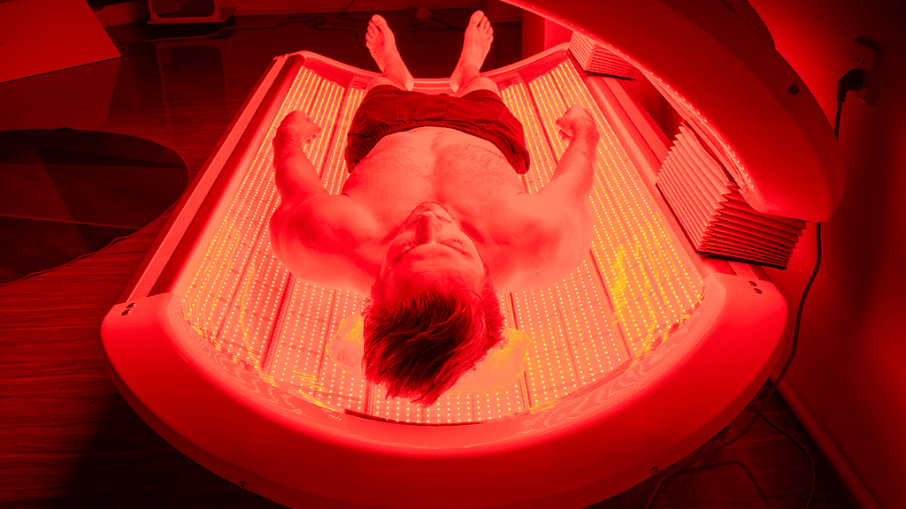 Red light therapy uses low-wavelength red and near-infrared light to penetrate the skin and stimulate cellular energy (ATP) production. Benefits may include improved skin health, reduced inflammation and pain, faster muscle recovery, and better wound healing.