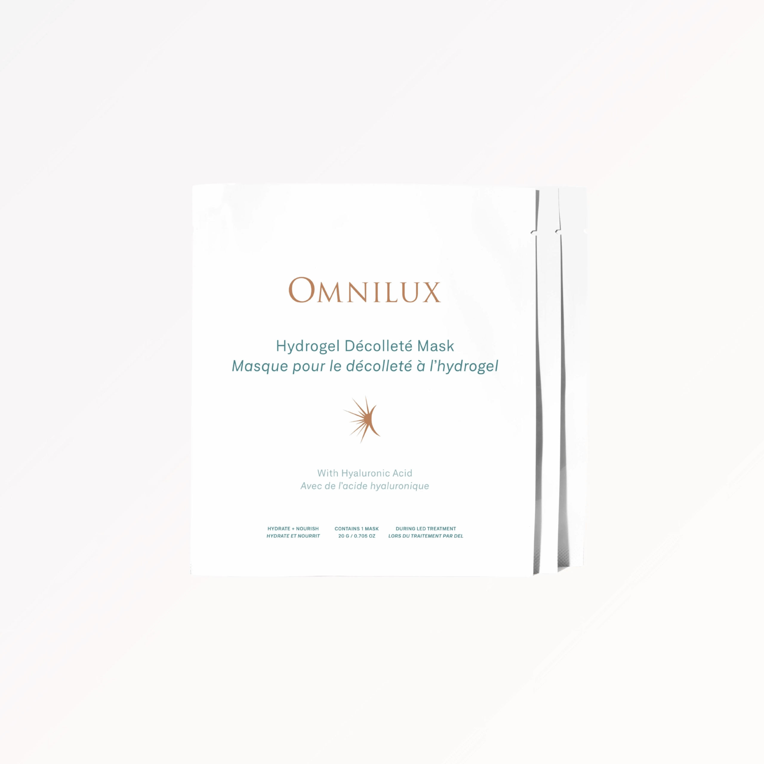 A soothing, hydrating mask specifically designed for the décolleté area, infused with nourishing ingredients to deeply moisturize, calm, and rejuvenate the skin while enhancing the results of LED light therapy.